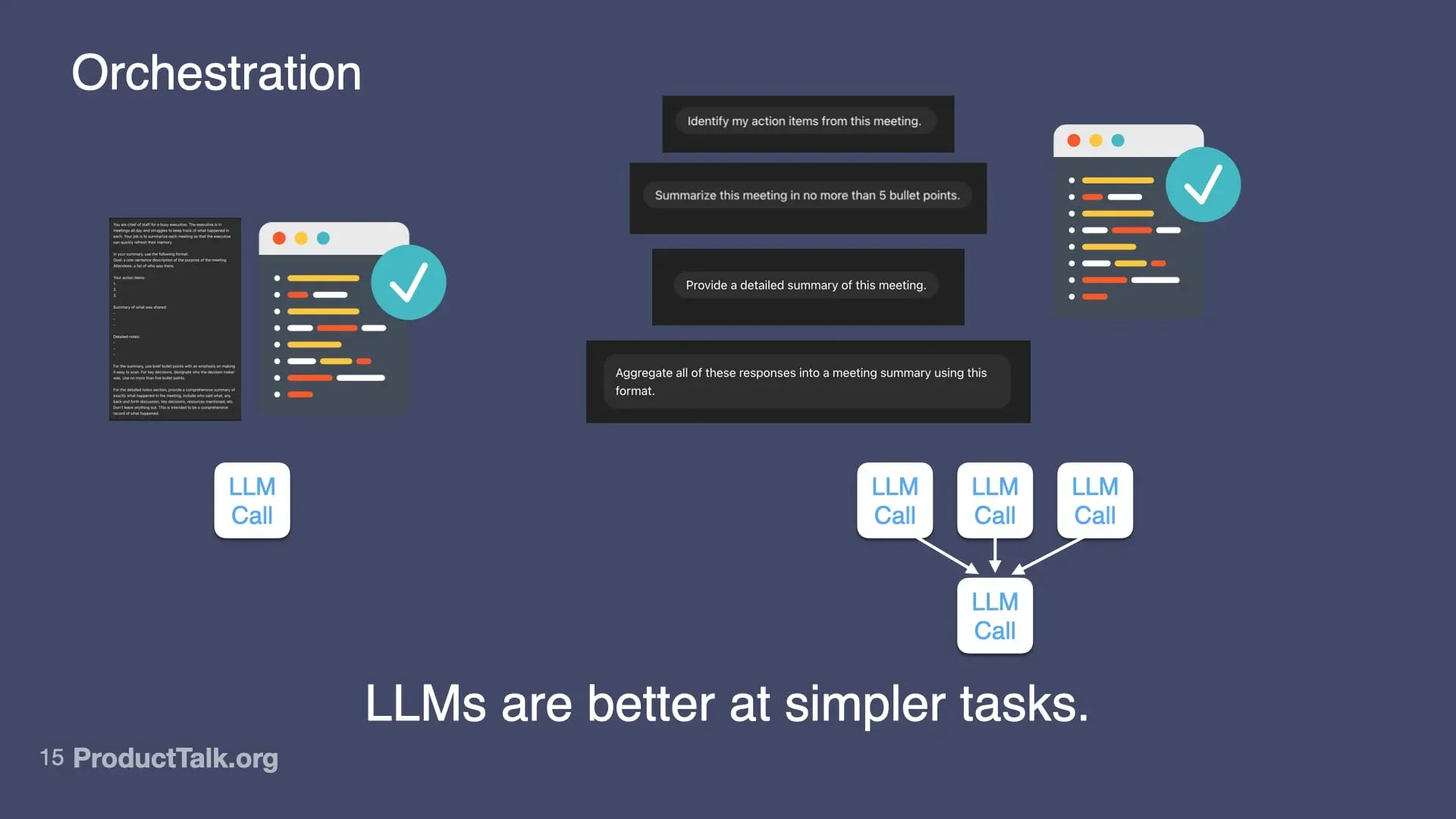 - You need to learn orchestration—how to break complex tasks into simpler steps that LLMs handle better.