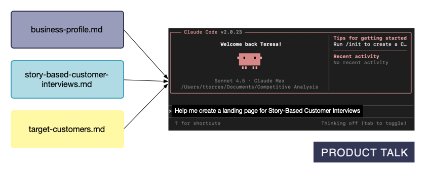 If your target customer changes, you simply need to update your text file. Same with your products—you can easily add and remove information as your products evolve. Odds are much of this information already lives in your file system. It's just a matter of making it easy for Claude to use.